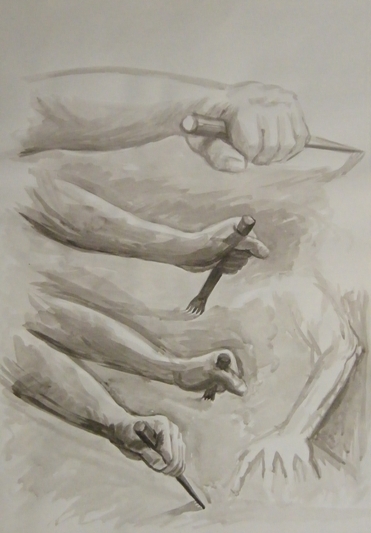 Vytahování geometrické podstaty motivů mne zujalo i při krebě hlav a to dokonce přímo portrétů.Navíc si myslím, že u portrétů to pomohlo k prohloubení charakteristiky osob.